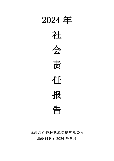 The scope of this report is Hangzhou Chuankou Special Wire and Cable Co., Ltd. This report describes the company's concepts, systems, measures taken, and performance achieved in protecting shareholder and creditor rights, employee rights, supplier, customer, and consumer rights, environmental protection and sustainable development, public relations, and social welfare undertakings from January 1, 2022 to December 31, 2022.