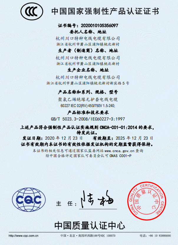 Single core wire CCC certification certificate